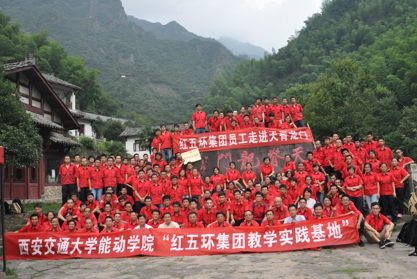 “红五环”暑期实践团队全体成员。这标志着西安交通大学和红五环集团的校企合作交流又取得了新的进展,迈上了新的台阶。